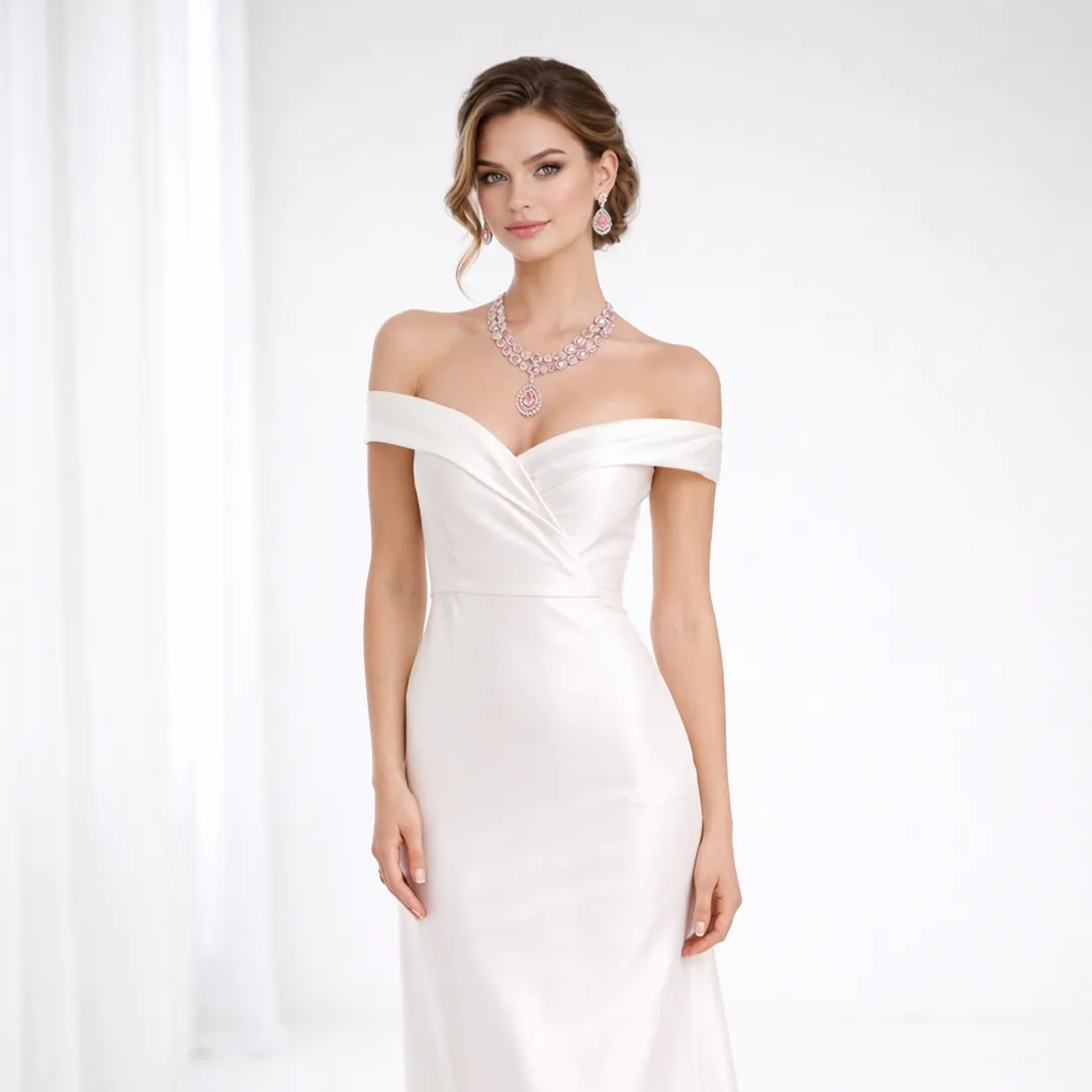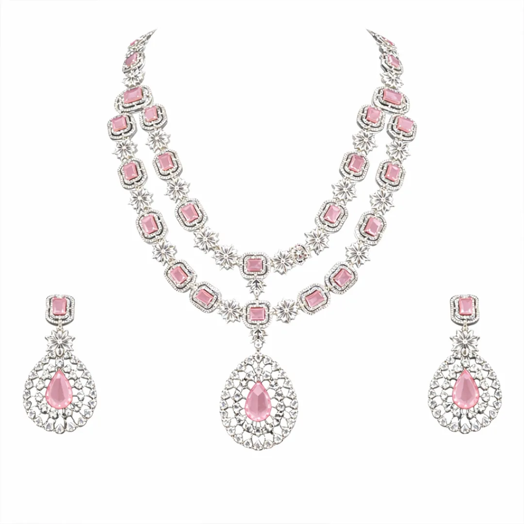 Two Layer Blush Pink American Diamond Necklace Set